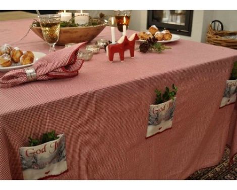 - Rød og hvid små ternet dug, med fin rød hæklet kant, fra Artefina Design.
